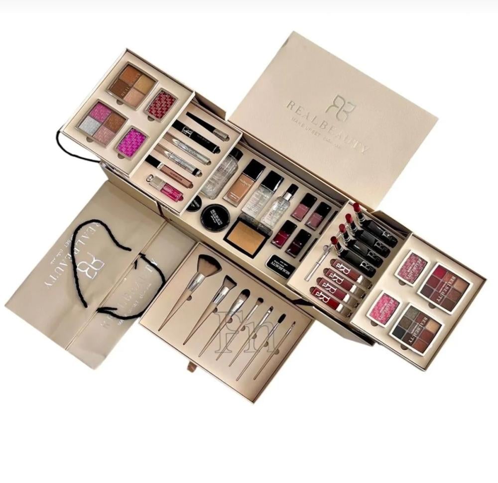 لعاشقات المكياج والأنوثة! بوكس المكياج المتكامل هذا مو بس منتج، هو رحلة كاملة من الجمال في صندوق واحد!